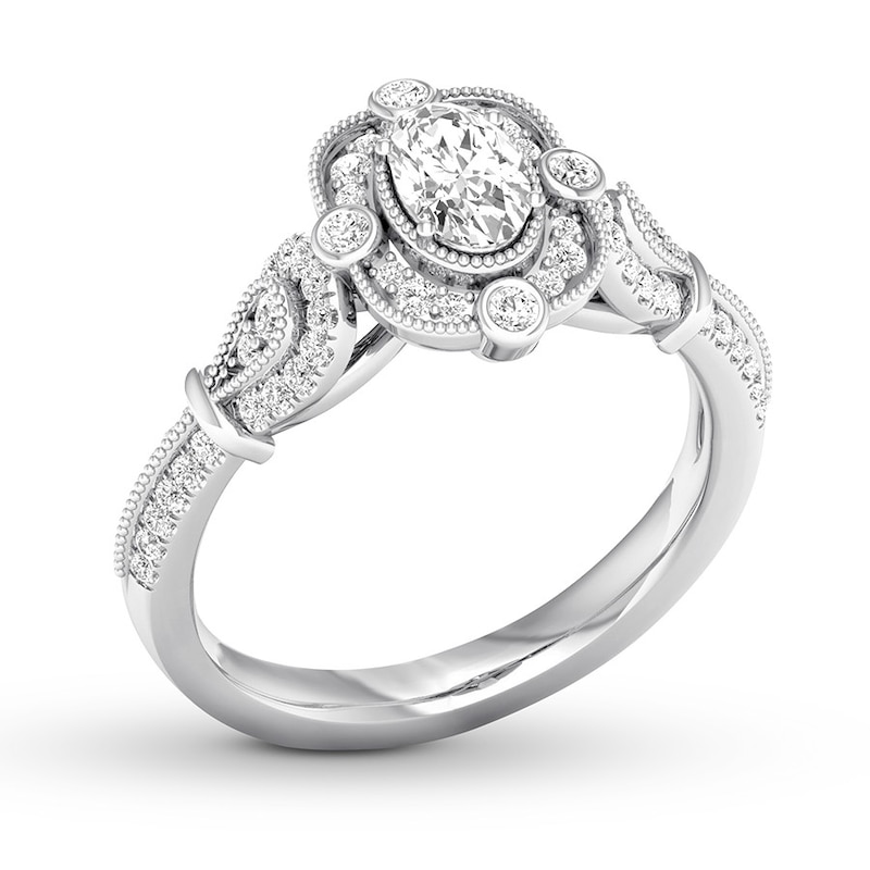 Diamond Engagement Ring 3/4 ct tw Oval & Round White Gold Plated