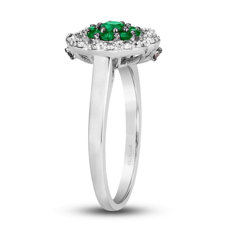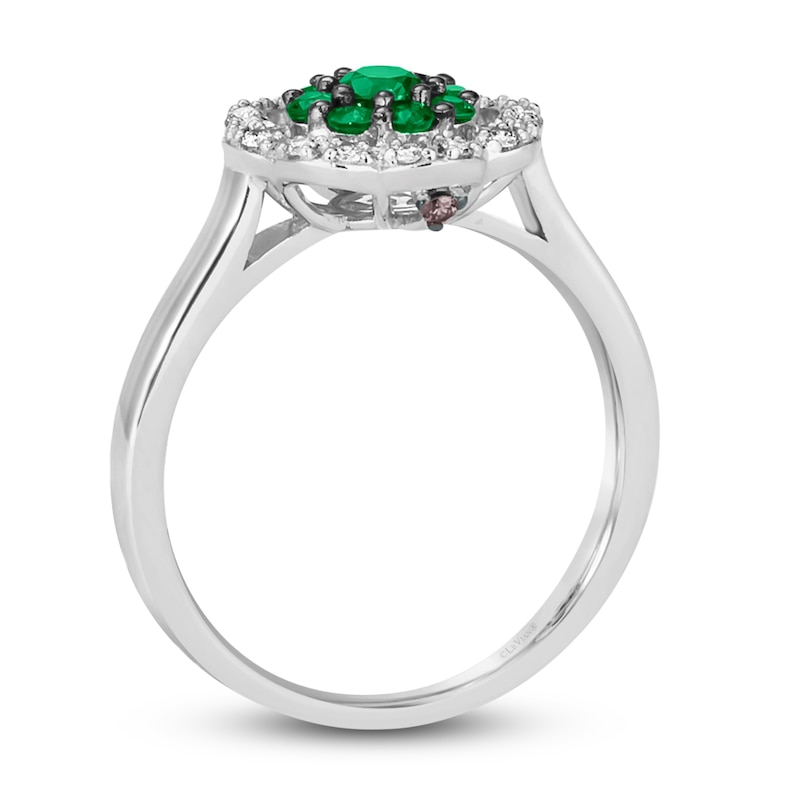 A cluster of Costa Smeralda Emeralds™ outlined with sparkling Nude Diamonds™ forms the tempting center. Unexpected sprinkles of decadent Chocolate Diamonds® lend a delightful finish. With a total diamond weight of 1/6 carat, the silhouette is crafted in sweet 14K Vanilla Gold®. Le Vian®. Discover the Legend. This ring is available in limited sizes. If you don't see your size here, please visit a store to order your ring.