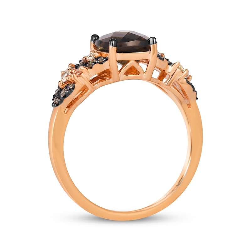 • Le Vian Venetian Mosaic Chocolate Quartz Ring 3/8 ct tw Diamonds Strawberry Gold Plated