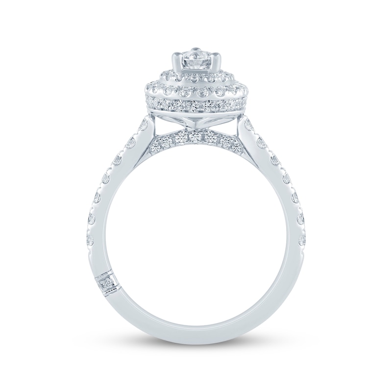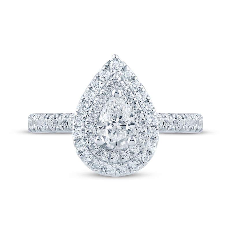 • Monique Lhuillier Bliss Pear-Shaped Diamond Double Frame Engagement Ring 1-1/8 ct tw White Gold Plated