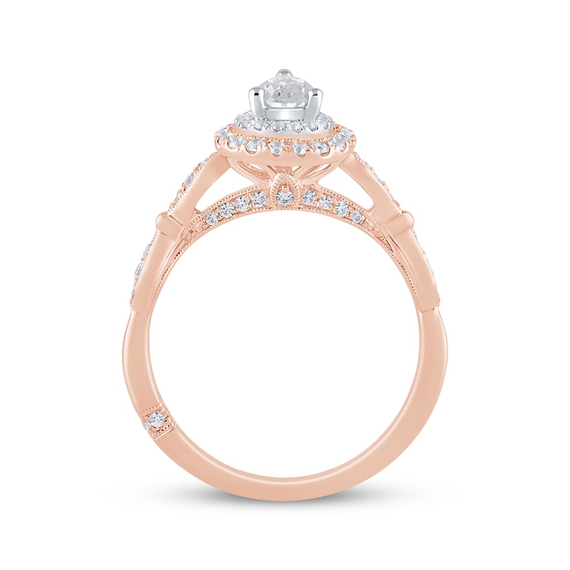 • Monique Lhuillier Bliss Pear-Shaped Diamond Double Frame Engagement Ring 3/4 ct tw Two-Tone Gold Plated