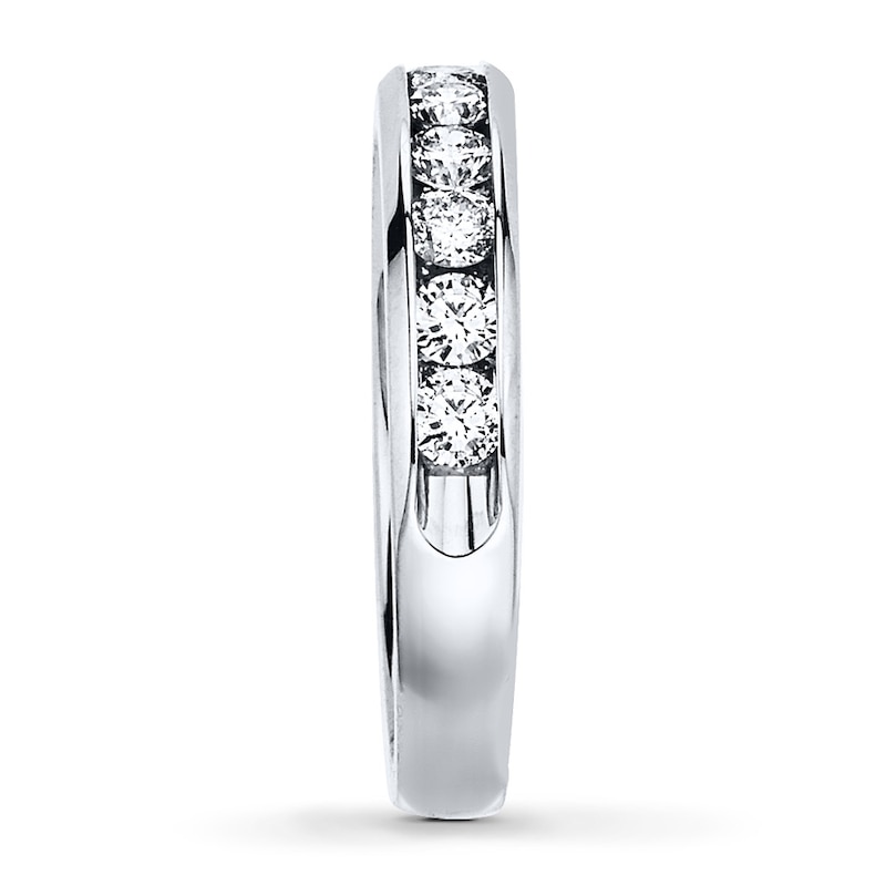 Breathtaking round diamonds are channel-set in a band of 10K white gold in this captivating ring for her. Perfect for an anniversary or wedding band, the ring has a total diamond weight of 1 carat. Available online while supplies last. Previously Owned Treasures are not eligible for in-store pick-up. Previously Owned Treasures may only be shipped either to your home address or to an alternate address. Price comparison based on new item pricing.