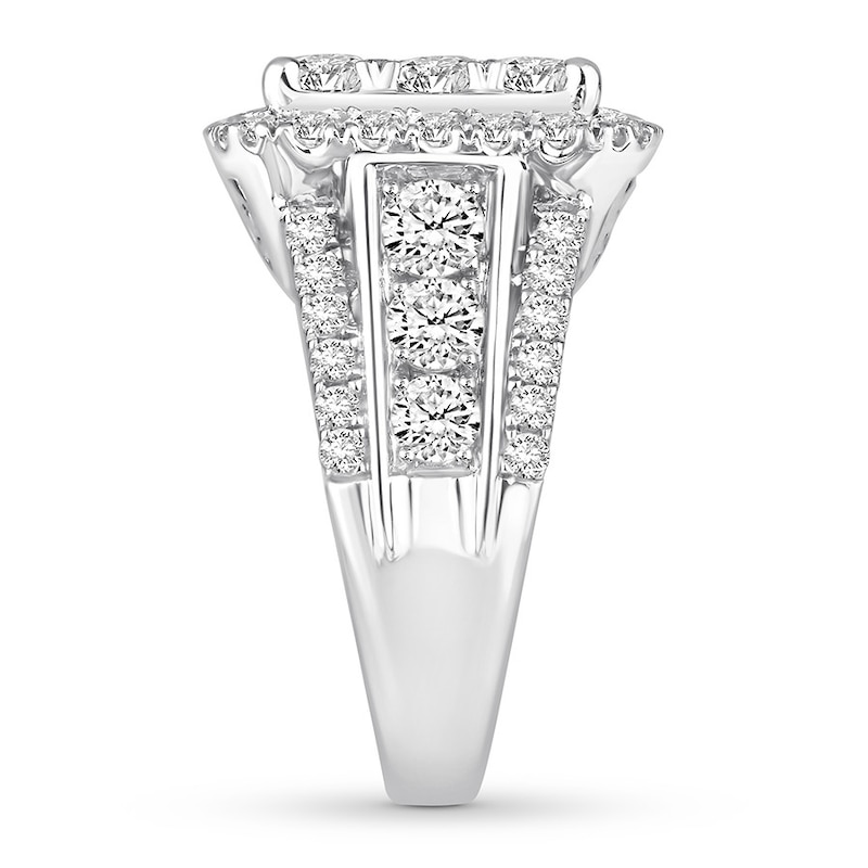 Each of the brilliant round diamonds in this magnificent engagement ring shines with your love. Totaling an impressive 3 1/2 carats in total diamond weight, the ring is crafted of 10K white gold.