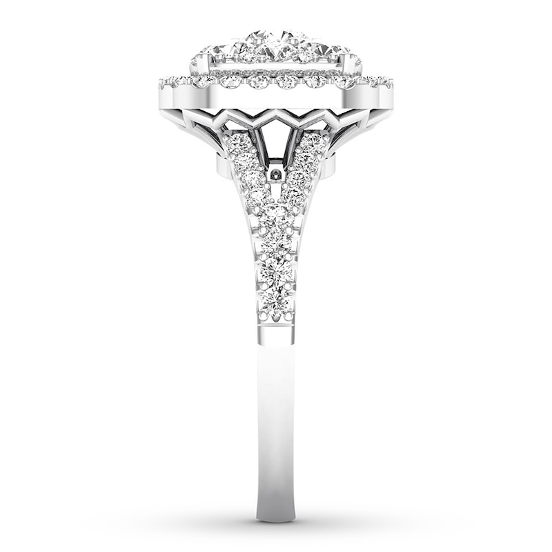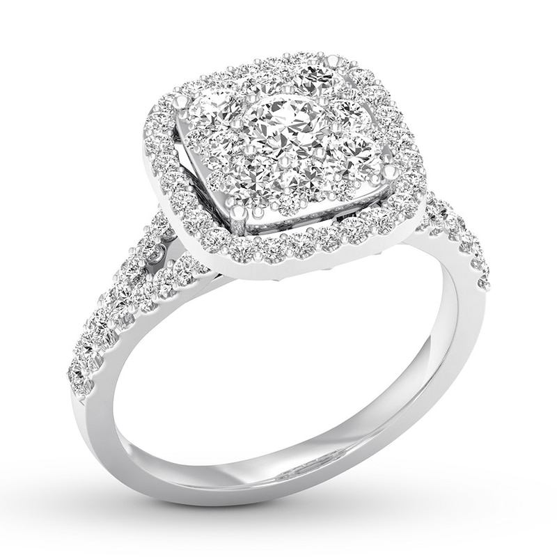 For an everlasting love, never-ending sparkle. Awash in round diamonds, this extraordinary engagement ring is crafted of 14K white gold. The ring has a total diamond weight of 3/4 carat.