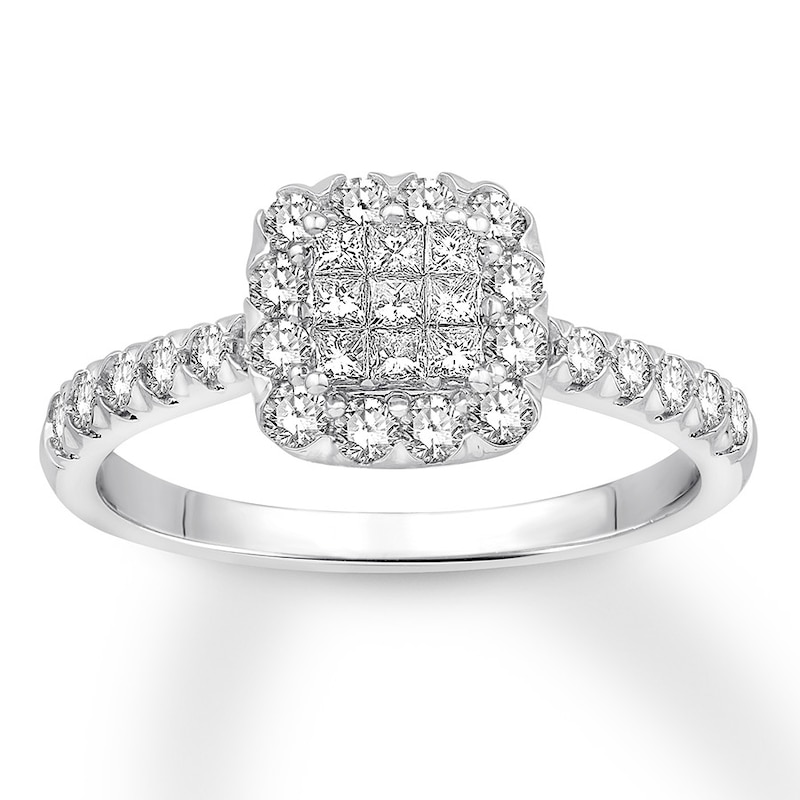 Diamond Engagement Ring 3/4 ct tw Princess-cut White Gold Plated