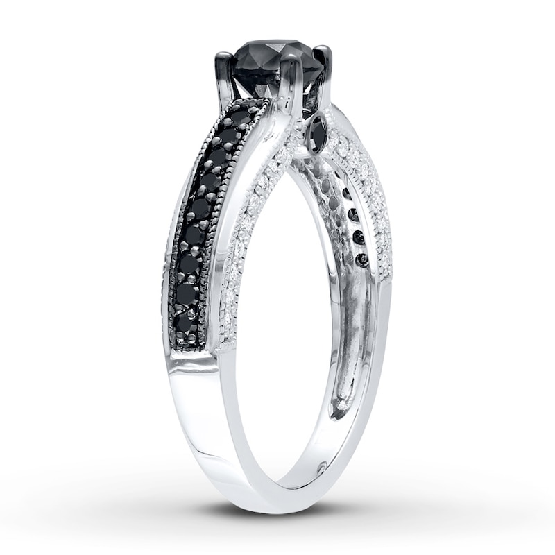 Black & White Diamond Engagement Ring 1 carat tw White Gold Plated